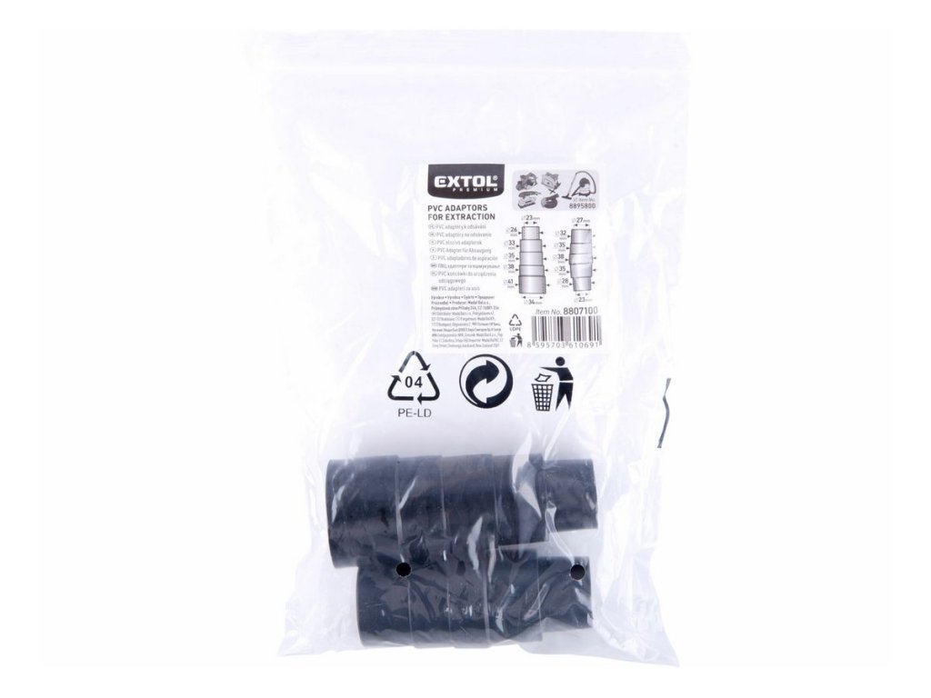 Vďaka pružnosti materiálu sa adaptéry mierne natiahnu a prispôsobia sa presne tomu, čo potrebujete spojiť. Ak by ste potrebovali kratší adaptér, jednoducho ho skráťte nožnicami na želanú dĺžku. Takto získate presne to spojenie, ktoré vaša práca vyžaduje, či už ide o pripojenie brúsky, píly alebo frézky k vysávaču EXTOL.