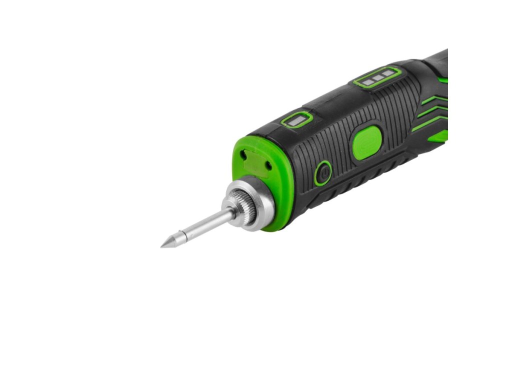 Táto akumulátorová spájka s výkonom 11 W slúži na rýchle spájanie vodičov a jemnej elektroniky bez obmedzenia káblom. Integrovaná Li-ion batéria s napätím 3,7 V a kapacitou 1,8 Ah umožňuje voľný pohyb pri práci.
