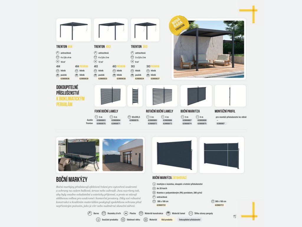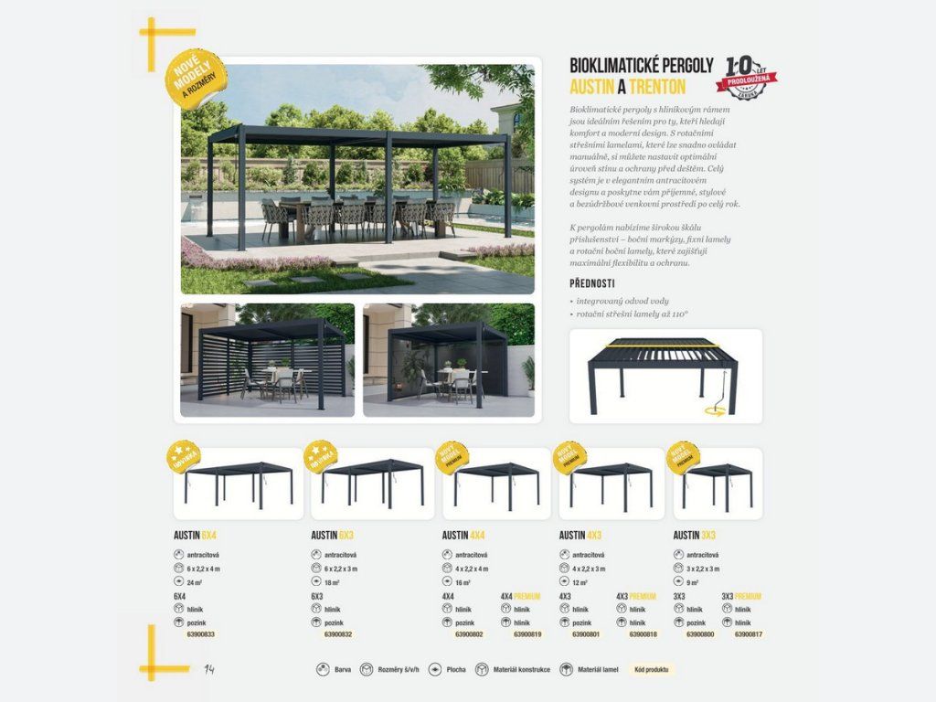 Navyše, hoci sú lamely pevné a znesú zaťaženie až 100 kg/m², odporúčame ich počas zimných mesiacov nechať pootvorené, aby sa na nich zbytočne nehromadil ťažký sneh. A ak by ste si časom chceli dopriať viac súkromia alebo ochrany pred vetrom, k pergole G21 Austin si môžete kedykoľvek dokúpiť bočné tieniace rolety alebo pevné či otočné bočné lamely.