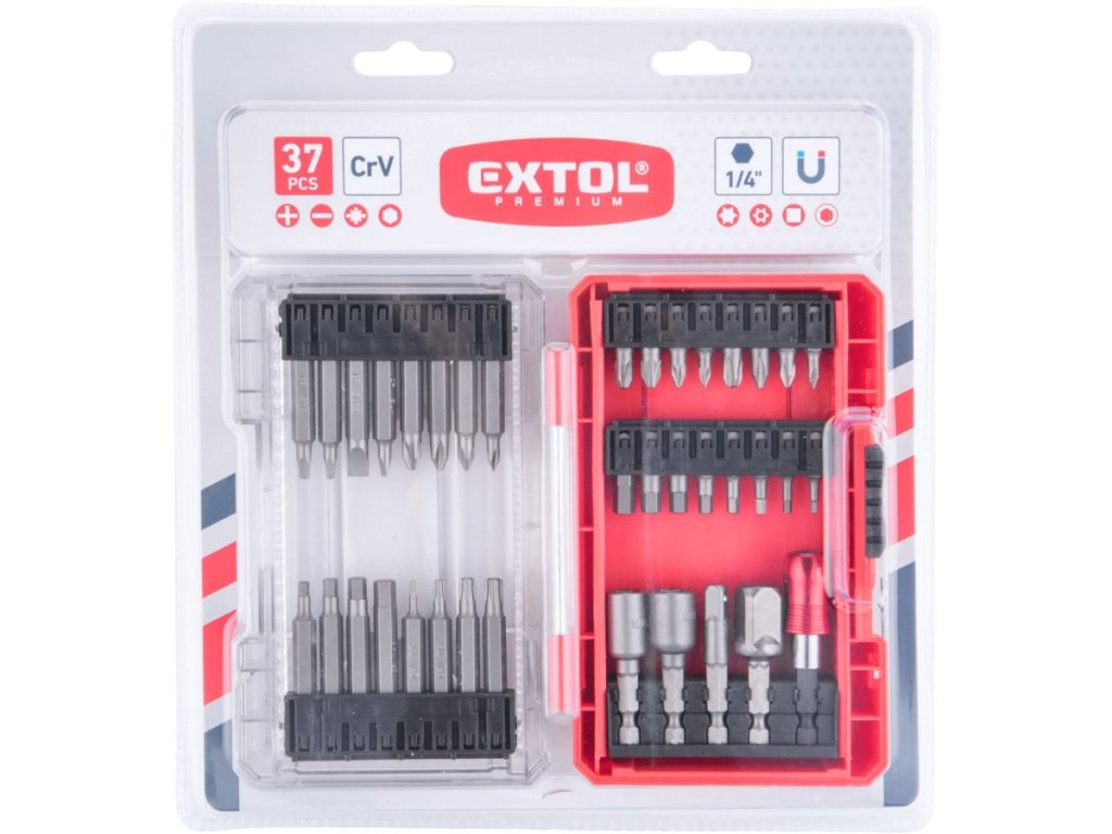 Praktická sada bitov a nástrčných kľúčov Extol Premium 37ks pre každú dielňu
