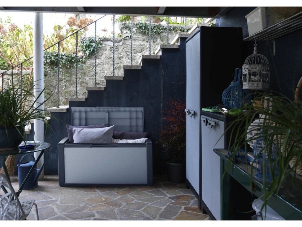 - Vnútorný objem 300 l uskladní kompletný set záhradného polstrovania