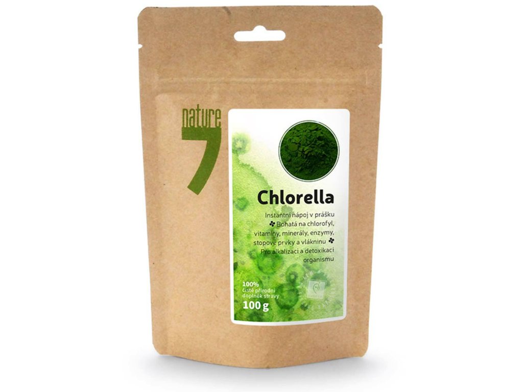 Chlorella - nápoj v prášku 100g Nature7. Chlorella pyrenoidosa je jednobunková sladkovodná riasa. Obsahuje chlorofyl, bielkoviny, betakarotén, vitamíny, minerály a antioxidanty.- Zloženie: 100% chlorella pyrenoidosa (riasa). Čisté prírodné zloženie, neobsahuje žiadne aditíva, farbivá či dochucovadlá.