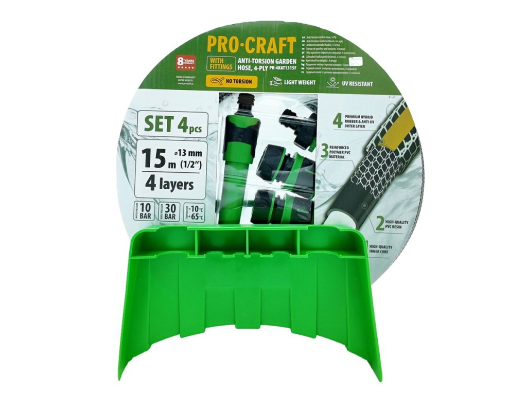 Záhradná hadica PROCRAFT PR-4KAT1315F, 4-vrstvová, 1/2" (13 mm), dĺžka 15 m, UV odolná, čierno-žltá, s príslušenstvom