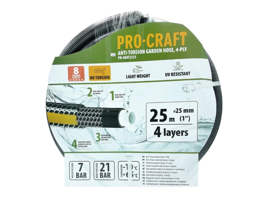 Odolnosť voči živlom a vysokému tlaku so záhradnou hadicou Procraft PR-4KAT2525