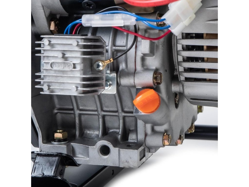 Keď máte ruky špinavé od práce, elektronický štart vám ušetrí čas aj námahu s ťahaním šnúry. Celý mechanizmus chráni kovový rám, takže sa nemusíte báť poškodenia pri prevoze na stavbu.