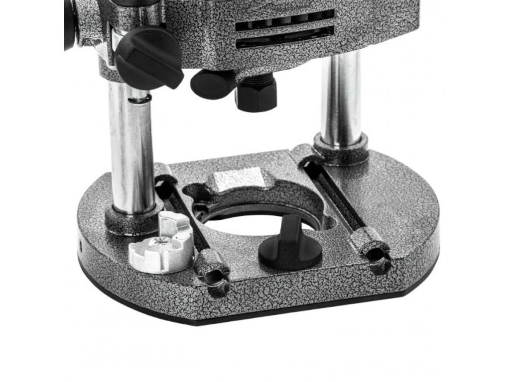 Základňa frézky dovoľuje precízne nastavenie hĺbky rezu v rozsahu 0 – 50 mm, čo využijete pri zapúšťaní pántov alebo výrobe drážok pre zadné steny skriniek. Nastaviteľné hĺbkové dorazy sa postarajú o to, že každá drážka na vašej novej terase bude mať identický rozmer na milimeter presne.