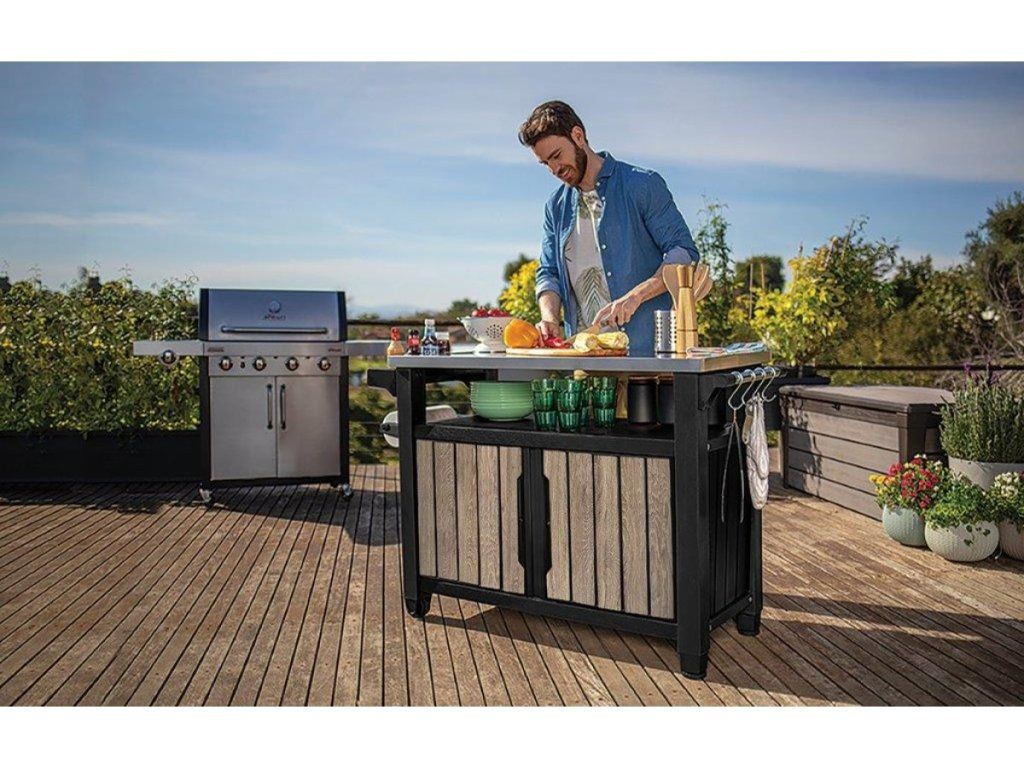 Grilovací stolík Keter UNITY XL s celkovým úložným priestorom 298 litrov slúži ako kompletná prípravná a servírovacia stanica pre každého majstra grilu.