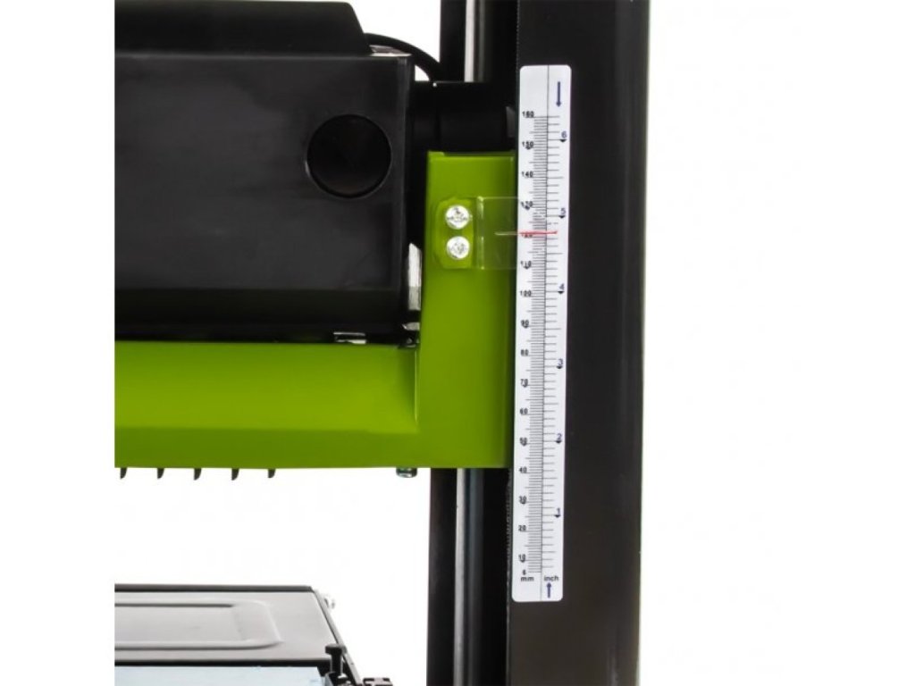 Presná stupnica úberu materiálu a hĺbky rezu dovoľuje nastaviť triesku od 0 do 3 mm podľa tvrdosti dreva. Práca v dielni zostáva čistá vďaka možnosti pripojenia vysávača cez integrovanú hadicu, čo chráni vaše pľúca pred jemným prachom.