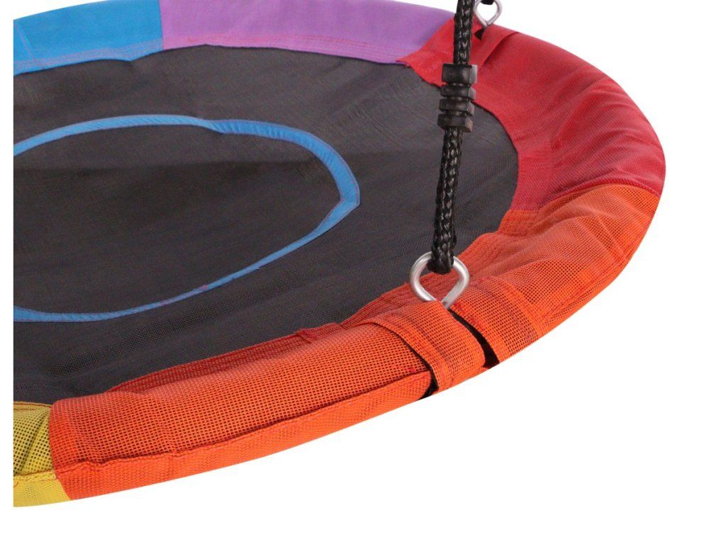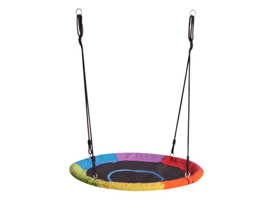 Hojdací kruh G21 dúhový, priemer 100 cm, nosnosť 50 kg, nylonový poťah, nastaviteľné laná