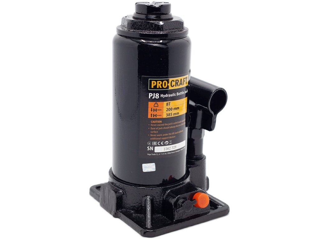 Hydraulický zdvihák PROCRAFT PJ8, nosnosť 8 000 kg, zdvih 200–385 mm, liatinová konštrukcia, vrátane tyče
