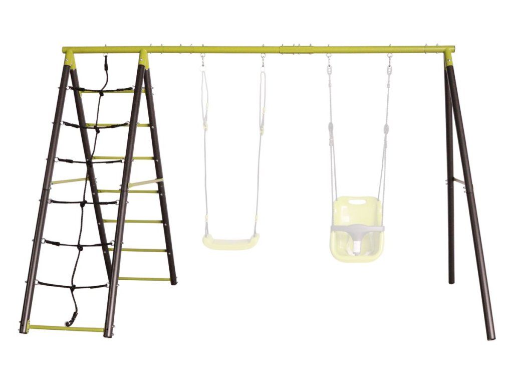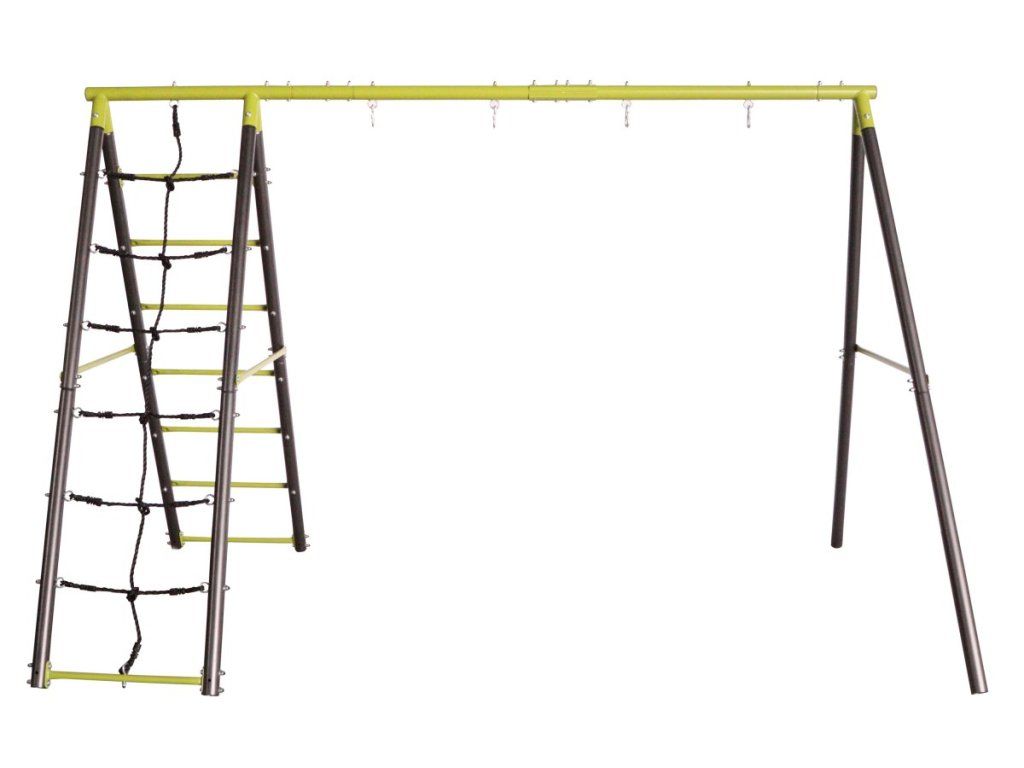 Okrem miesta na zavesenie nájdete v balení aj lezeckú sieť z PE plastu a integrovaný rebrík, ktoré rozvíjajú motoriku a silu úchopu. Povrchová úprava s UV ochranou garantuje, že plastové prvky ani kov nestratia svoje vlastnosti ani po rokoch na priamom slnku pri bazéne alebo na terase.