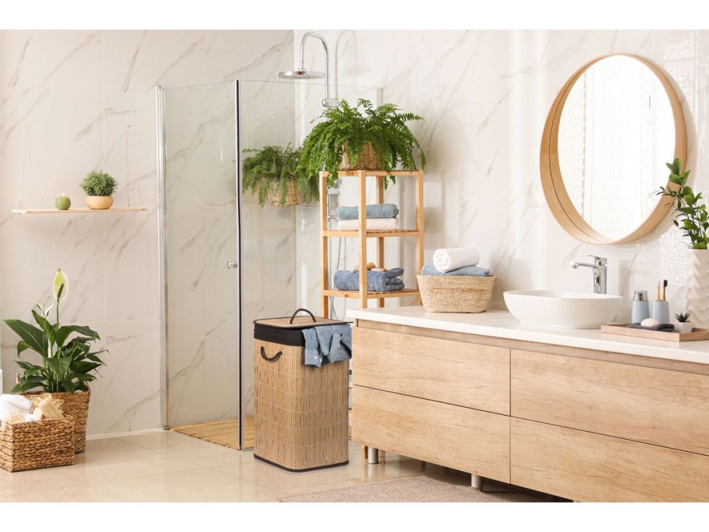 Rozmery 42 × 61,5 × 31,5 cm umožňujú uložiť kôš aj do menšieho priestoru bez toho, aby pôsobil rušivo. Vďaka svojmu modernému dizajnu s imitáciou ratanu zapadne do každej kúpeľne, práčovne či spálne.