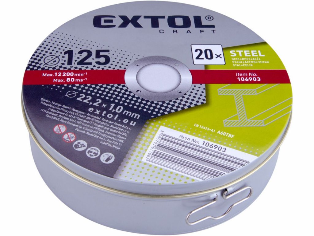 Kotúč rezný na kov 20ks, 125x1,0mm, plechová krabička