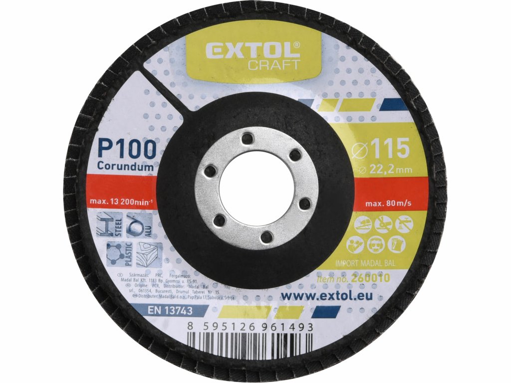 Lamelový kotúč šikmý korundový P100 115mm. Na brúsenie profilov, zvarov, plôch, odhrdzovanie, čistenie odliatkov, zrážanie hrán, odstraňovanie lakov, tmelov a farieb. Vhodný pre materiály ako hliník, mäkké neželezné kovy a ich zliatiny, bežné druhy konštrukčných ocelí, plasty, drevo.- vnútorný priemer 22,2mm pre uchytenie v uhlovej brúske