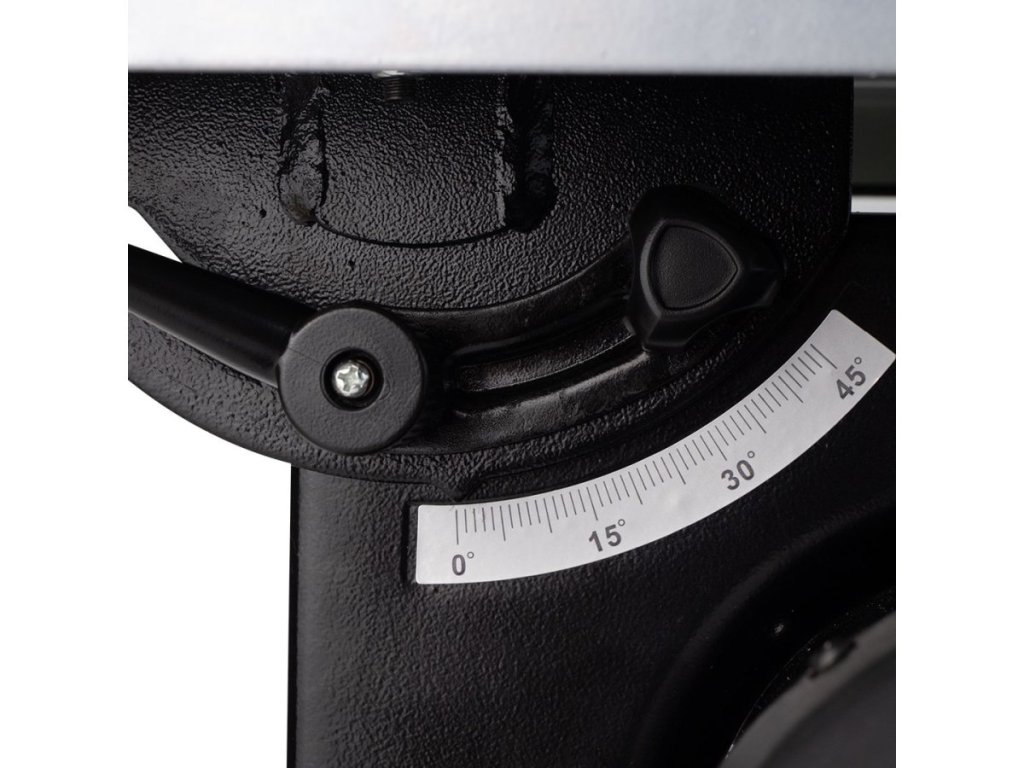 - Naklápací stôl so stupnicou umožňuje rýchle nastavenie šikmých rezov