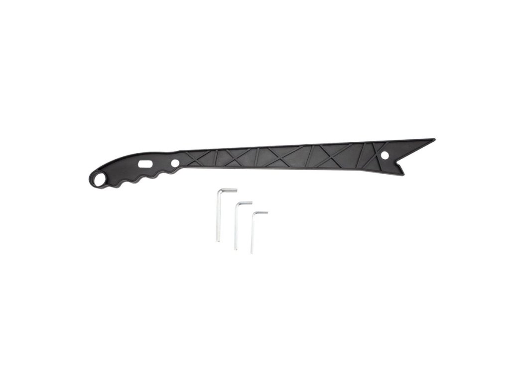 Balenie obsahuje montážne kľúče a základné pravítka, stačí osadiť príslušenstvo a skontrolovať napnutie pásu podľa priloženého návodu.
