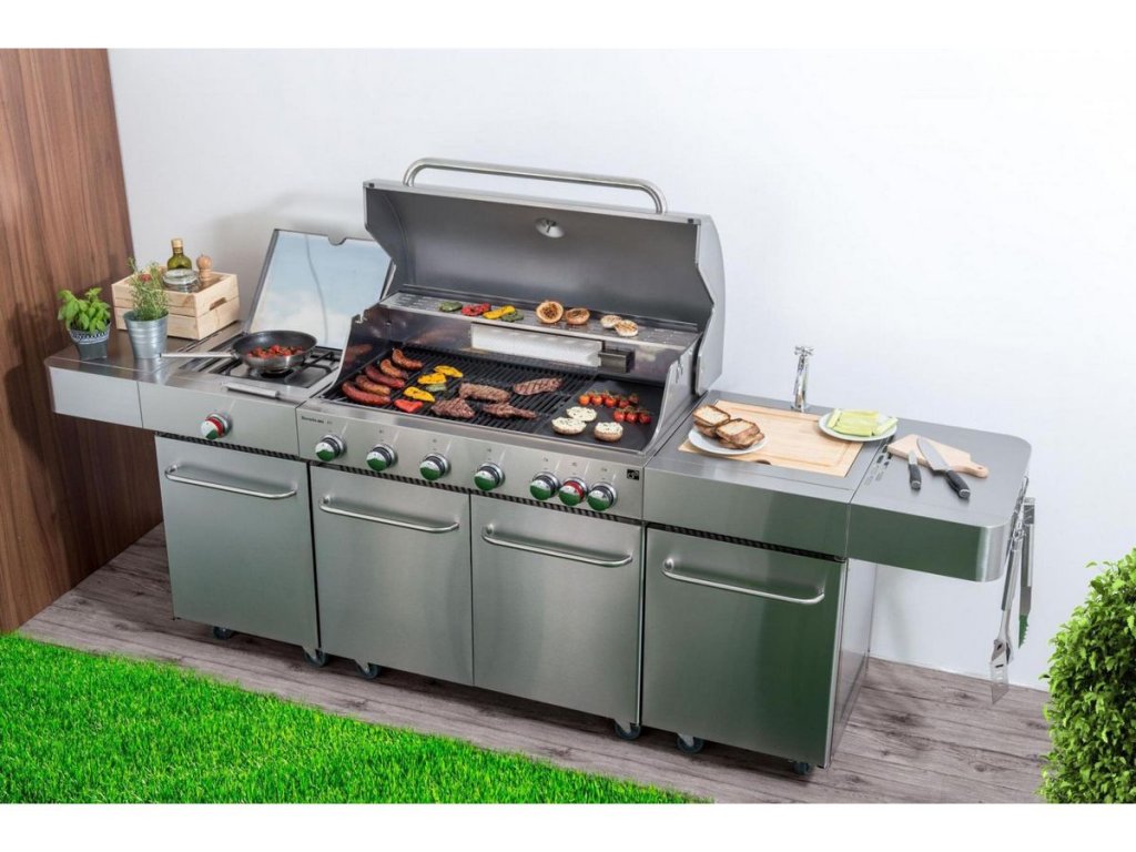 Zaujímavosť: Vstavaný drez s prívodom vody eliminuje nutnosť pobehávať medzi domom a grilom, čo ušetrí čas a energiu pri príprave hostiny.