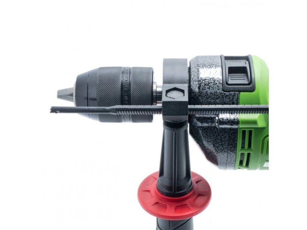 - Prídavná rukoväť zvyšuje bezpečnosť a presnosť vedenia diery