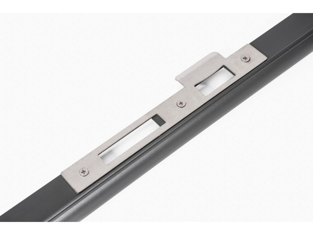 Tento set obsahuje dva kľúčové dielce – dorazový profil ku stĺpiku a plech k zámku. Spolu zabezpečia, že bránka sa bude otvárať a zatvárať rovnako spoľahlivo ako v štandardnej pravej verzii.
