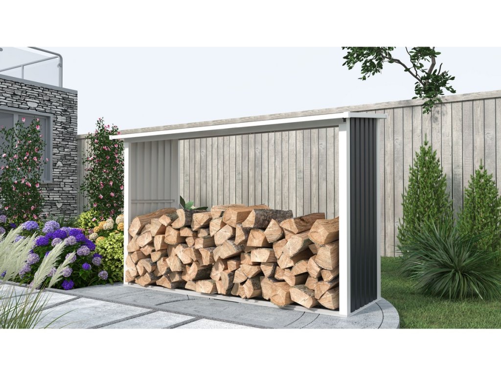 Hľadáte spoľahlivé riešenie pre uskladnenie väčšieho množstva palivového dreva? Prístrešok na drevo WOH 335x242x89 cm v antracitovej farbe je odpoveďou na vaše potreby. S objemom 2,7 m³ poskytuje dostatok priestoru pre zásobu dreva aj pre náročnejšie zimné obdobia.