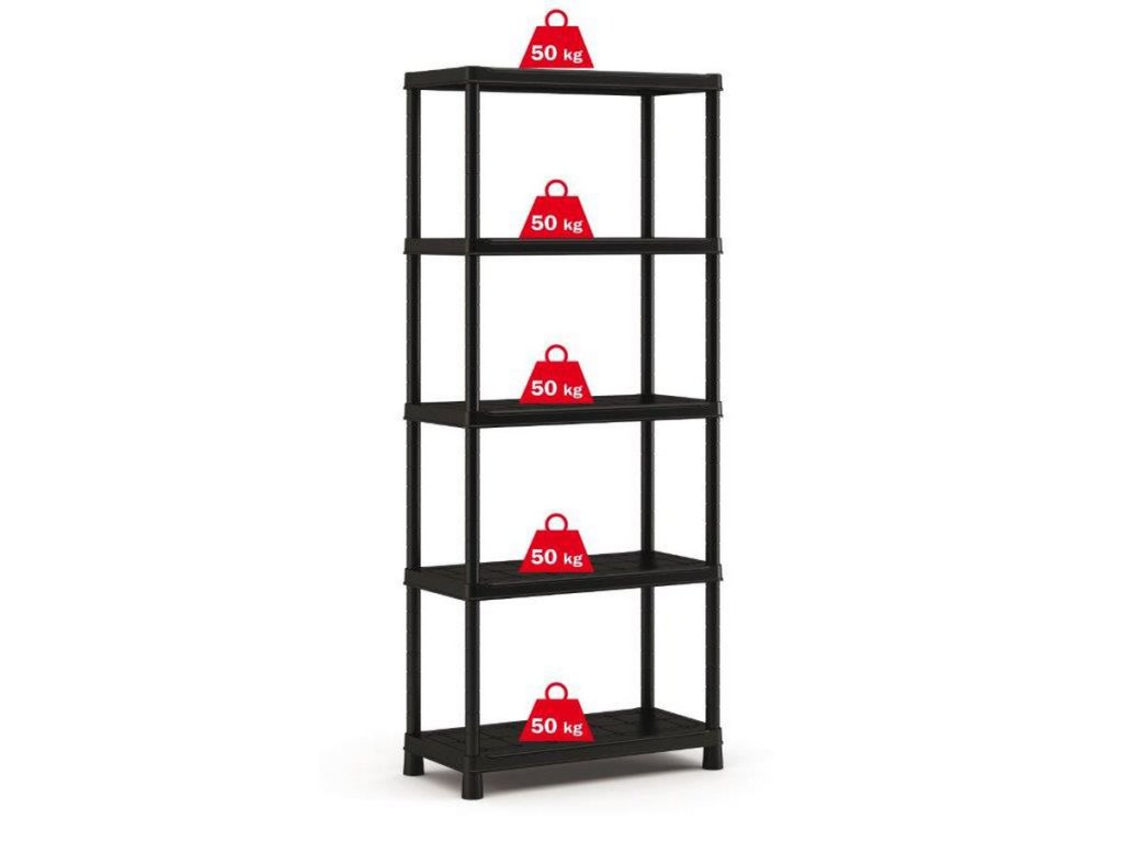 Jednou z kľúčových vlastností regálu Keter Plus Shelf 80/5 je jeho nosnosť. Každá z piatich políc dokáže uniesť až 50 kg, čo v súčte predstavuje celkovú nosnosť regálu 250 kg. Táto vysoká nosnosť umožňuje bezpečné uloženie aj ťažších predmetov, ako sú elektrické náradie, záhradné stroje či veľké zásoby potravín.