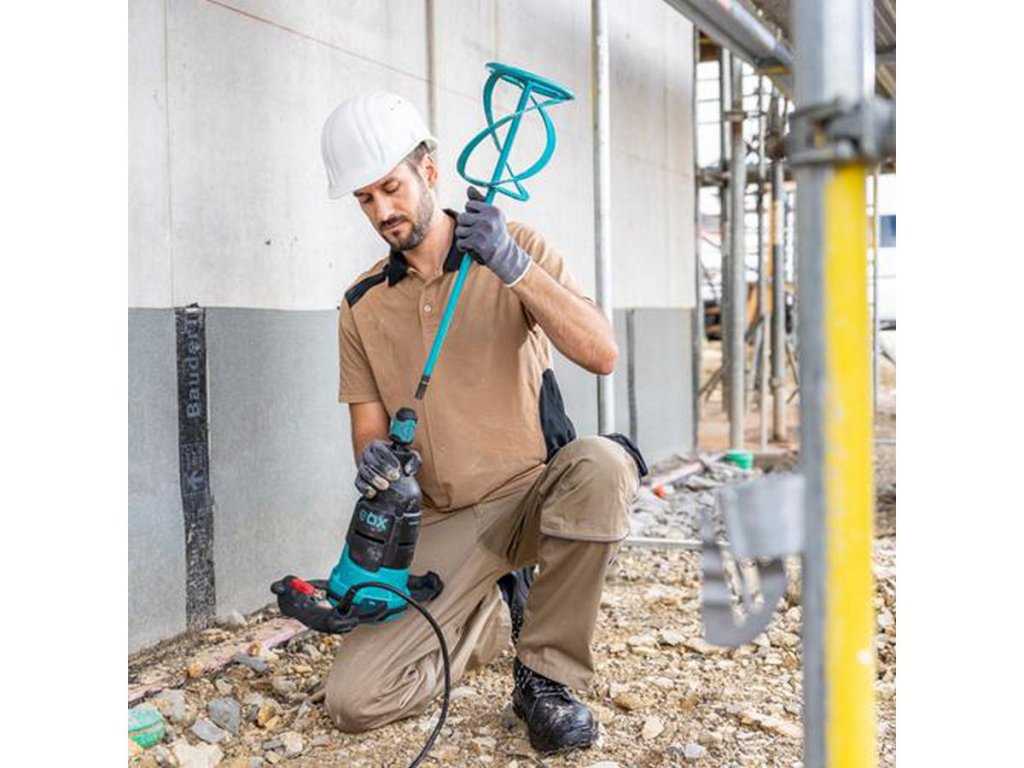 Motor s výkonom 1100 W a jednorýchlostným nastavením dosahuje až 670 otáčok za minútu, čo stačí na dokonalé premiešanie väčšiny stavebných materiálov. Elektronický spínač na reguláciu rýchlosti vám umožní jemne upraviť intenzitu miešania podľa konzistencie zložky, takže materiál zostane stále pod vašou kontrolou.