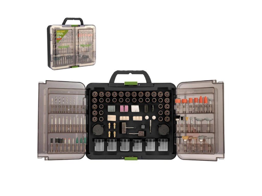 Sada nástavcov na priamu brúsku Procraft GK-418 predstavuje komplexný balík 418 kusov príslušenstva určeného na rezanie, brúsenie, leštenie, frézovanie a vŕtanie rôznych materiálov.