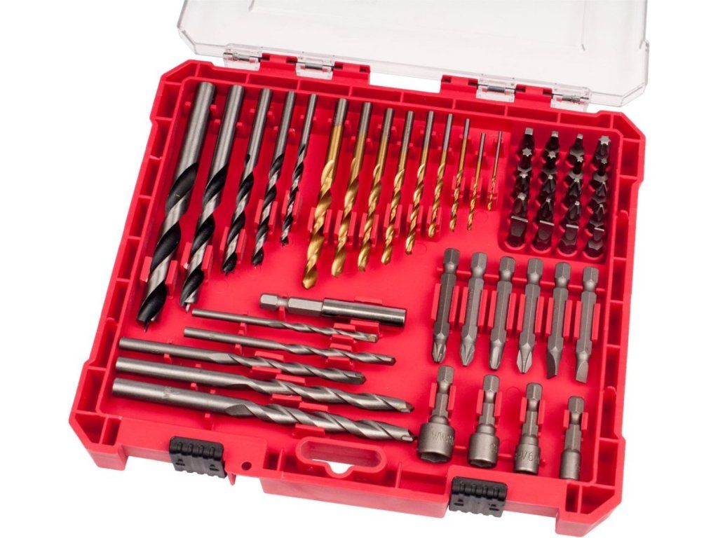 Päťdesiatdielna zostava nástrojov slúži na vŕtanie do ocele, mäkkého dreva aj tehlového muriva a obsahuje kompletný výber skrutkovacích bitov. Kombinácia materiálov HSS, HSC a CrV zabezpečuje, že každý diel sady zodpovedá fyzikálnym nárokom konkrétneho materiálu.