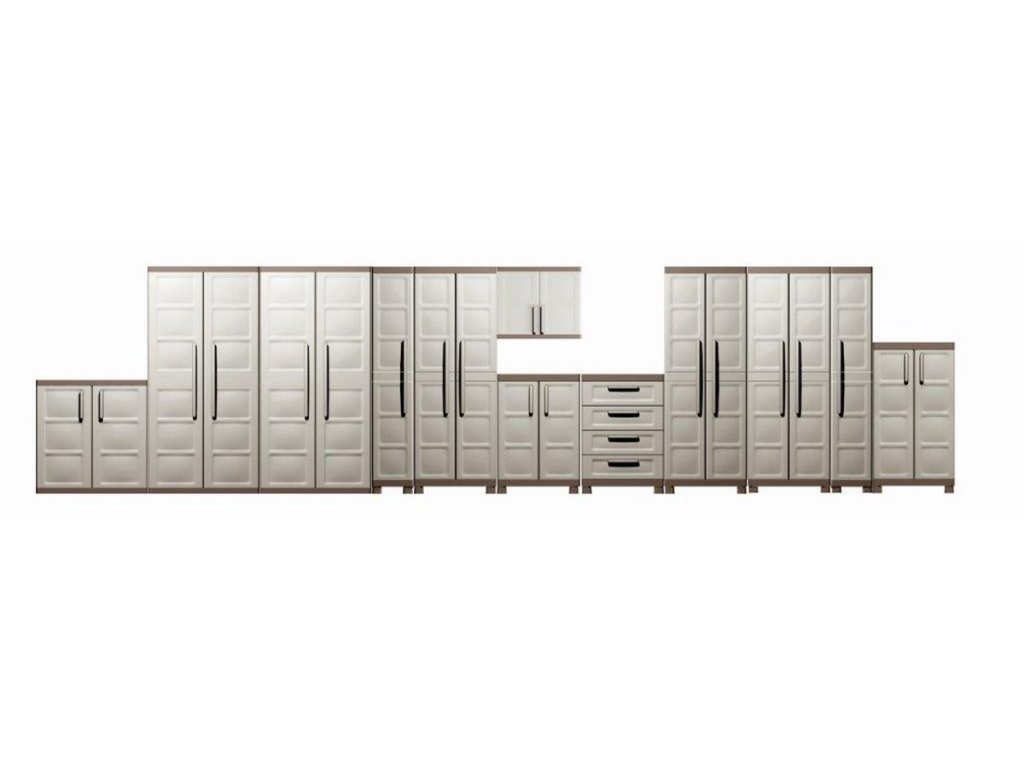 - 1x skriňa Keter Excellence Low s policami, nožičkami a uzamykateľnými dverami
