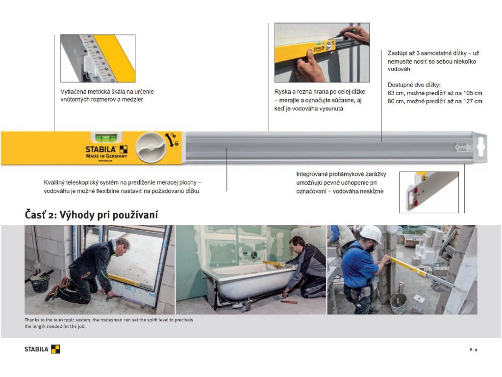 Použitie vodováhy STABILA 80 T pri rôznych činnostiach
