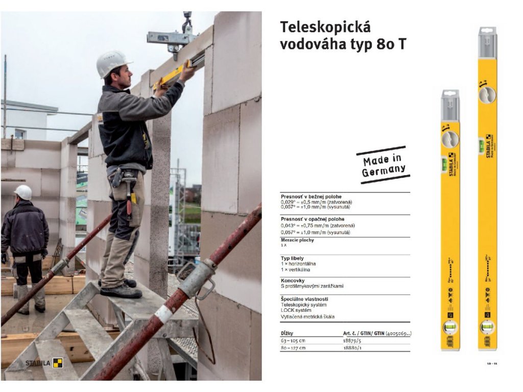 Zaujímavosť: Vodováha STABILA sa vyrába v Nemecku a je známa svojou dlhoročnou spoľahlivosťou medzi remeselníkmi.