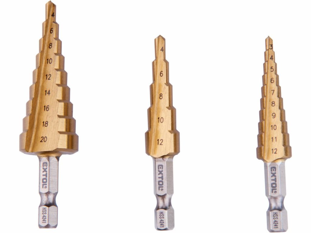 Vrtáky stupňovité, sada 3ks, ø3-12/1mm, ø4-12/2mm, ø4-20/2mm