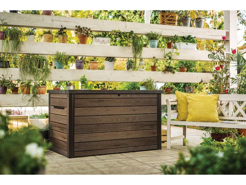 Záhradný úložný box KETER DECO, 870 l, hydraulické piesty, hnedý walnut