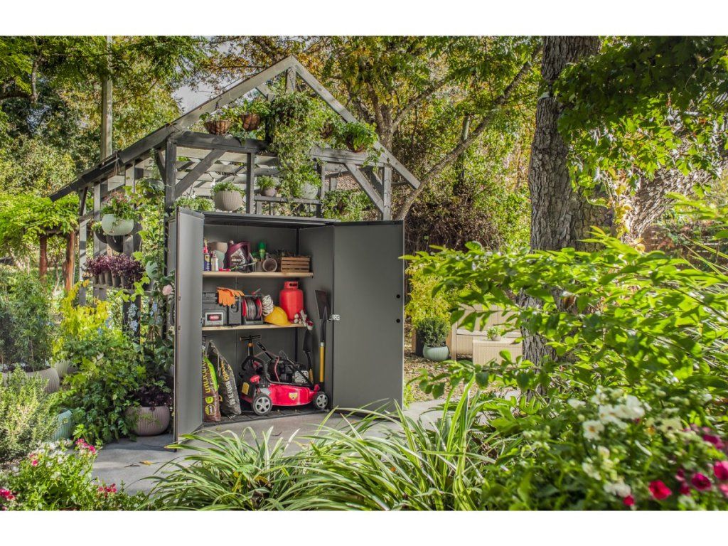 Hľadanie miesta pre lopaty, rýle a objemný gril v preplnenej garáži býva frustrujúce, preto táto záhradná skriňa s kapacitou 1 500 l ponúka okamžité uvoľnenie priestoru.