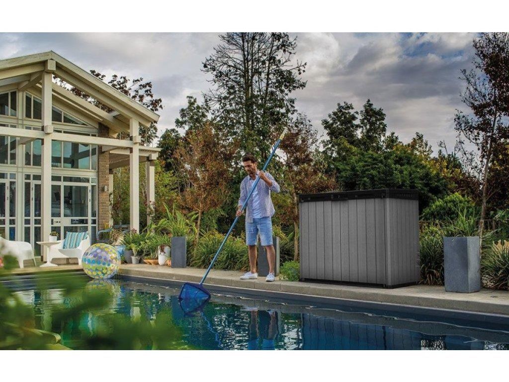 Záhradný úložný box Keter SIO Darwin predstavuje veľkokapacitné úložisko s objemom 1 150 l, určené na ochranu záhradného vybavenia, bazénovej techniky alebo dvoch 240 l popolníc.