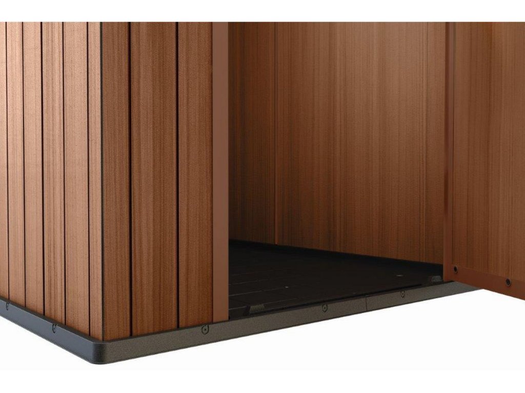 Podlaha domčeka je súčasťou základného balenia, čo nie je u všetkých výrobcov samozrejmosťou. Chráni uskladnené predmety pred vlhkosťou zo zeme, blatom aj drobnými hlodavcami.