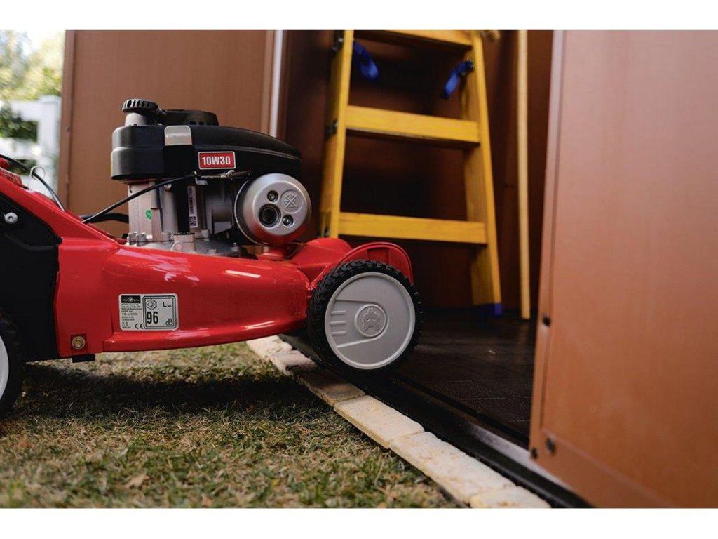 Podlahový panel zasa zvládne zaťaženie až 150 kg/m², takže v ňom bezpečne uskladníte aj ťažšie vybavenie ako kosačky či motorové píly.