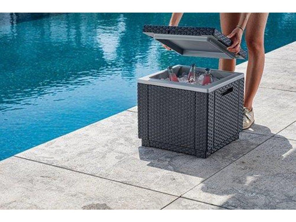 Záhradný chladiaci box Keter Ice Cube, 3 v 1, grafitový, 42 x 42 x 41 cm, imitácia ratanu
