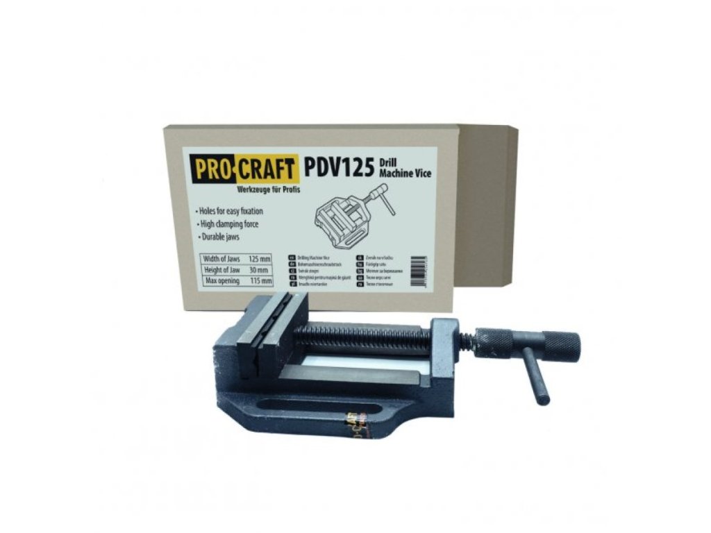 Zverák pod vŕtačku 115m, šírka čelustí 125mm, Procraft PDV125